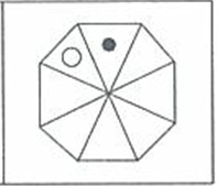 这道题属于位置类,主要考察图形的顺时针旋转。在封闭图形内部,白圆圈、空白半面与黑半面都沿着顺时针90度方向旋转,黑圆圈则是呈对角变化。
