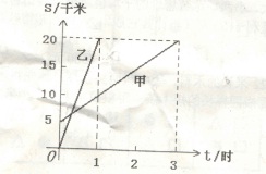 49甲、乙两人沿相同的路线由A地匀速前进到B地,A、B两地之间的路程为20千米,他们前进的路程为S(千米),乙出发后的时间为t(单位:时),甲、乙前进的路程与时间的函数图像如图所示。下列说法错误的是: