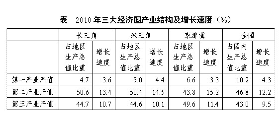 三大经济圈中,2010年三次产业增长速度均超过全国平均水平的有几个?