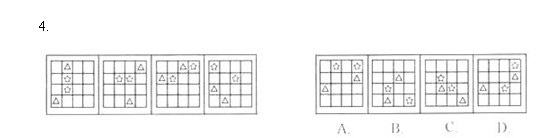 3、请从所给的四个选项中,选出最符合左边四个图形一致性规律的选项。( )