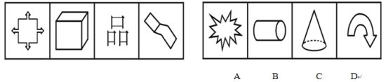 【解析】这道题考查的是曲直性。只根据题干很难找到规律,同样分析选项就比较容易看出区别,BCD都是曲线图形,只有A选项是直线图形,而题干中也都是直线图形,所以选择A选项。